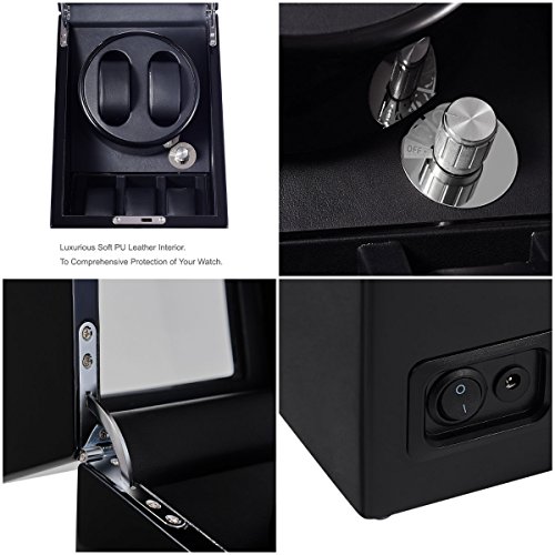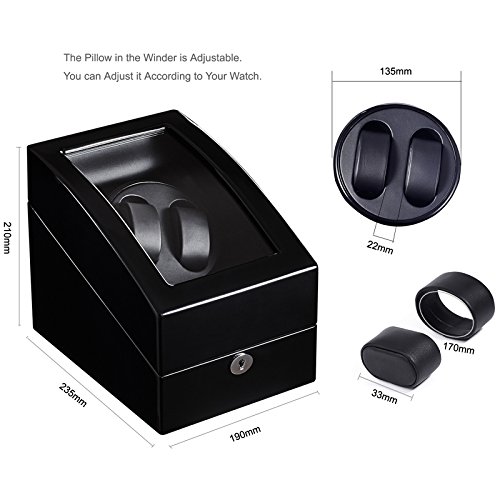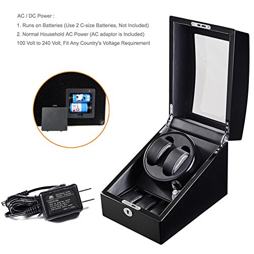 -. Feature : Powered with Japanese super slient motor no running noise. Nice looking, easy to operate. / 100% handmade and good value. The use of acrylic glass, environmental protection piano lacquer and transmission using copper fittings. 5 turntables with PU soft watch pilow, smooth, atmosphere and quality with high-grade. / Watch winder motor have 3 direction settings (clockwise, counter-clockwise and alternating) and multiple Turns Per Day settings. / Four Program Settings: Mode 1 : 2mins CW, rest for 6mins, repeat. Mode 2 : 2 mins CCW, rest for 6 mins, repeat. Mode 3 : 2 mins CW, rest for 6 mins, then 2 mins CCW, rest for 6 mins, repeat. Mode 4 : 5 mins CW, 5 mins CCW, repeat above for 3 hours, rest for 9 hours, repeat. / Dual power supply more reasonable. Powered by 100-240v AC Adapter(included) or 2X 1.5V Battery (not included). Dimensions: 19 * 23.5 * 21 CM.