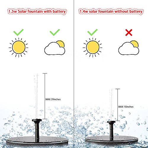 MADETEC Solar Fountain Pump with Battery Backup,1.5W Upgraded Submersible Solar Water Fountain Panel Kit for Bird Bath,Small Pond,Garden and Lawn