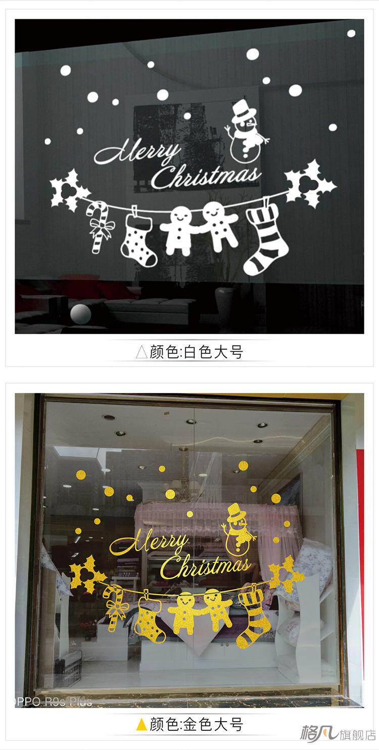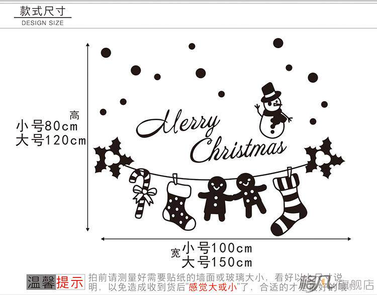 圣诞雪人雪花贴圣诞门贴画装饰品玻璃门窗贴纸圣诞袜子墙贴花