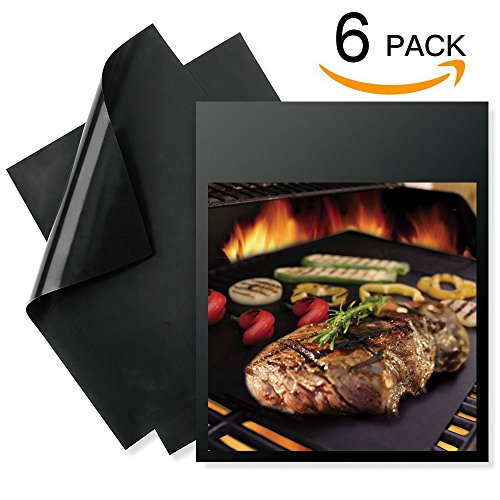 BBQ Grill Mat and Bake Mat Set of 6, Non-Stick BBQ Grill Mats, 500 Degree Heat-Resistance, Reusable and Easy to Clean, FDA-Approved, PFOA Free - Works on Gas, Charcoal, Electric Grill- 15.75 x 13 Inch