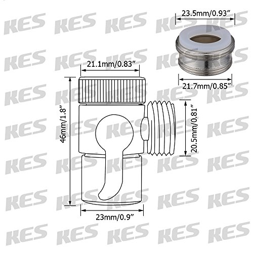 -. Brand : Kes -. Color : Chrome -. EAN : 0702168582557 -. Feature : for kitchen sink faucet or bathroom sink faucet, M22 x M24 connection sizes / Brass body construction / 1/4-turn valve operation means only a quarter turn of the handle / Switch water flow between faucet and sprayer / G 1/2 connection for regular shower hose/supply hose -. Label : KES Home (U.S.) Limited -. Manufacturer : KES Home (U.S.) Limited -. PackageQuantity : 1 -. ProductGroup : Home Improvement -. ProductTypeName : PLUMBING_FIXTURE -. Publisher : KES Home (U.S.) Limited -. Studio : KES Home (U.S.) Limited -. Title : KES BRASS Sink Valve Diverter Faucet Splitter for Kitchen or Bathroom Sink Faucet Replacement Part Faucet to Hose Adapter M22 X M24, Polished Chrome, PV10 -. UPC : 702168582557