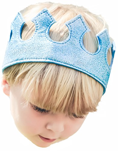 This adorable and comfortable crown comes in a variety of fun statement colors; this one is glittery ice blue. Let your princess or prince play dress up with friends, use as a great photo prop or add to a cake smash outfit. Encourage play time using their imagination and moving their bodies; natural play versus electronics! Your child will love the fun sparkly colors and the ease with which they put it on and take it off all by themselves! Perfect for a preschool class, photography, a school play, or any day to bring the magic to life. Crown is 3 inches tall, circumference is 19 inches unstretched and 22 inches stretched. Various colors and combo bundle packs available. You will be impressed with the quality, we worked hard to get it right, we promise!Feature