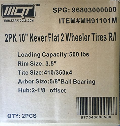 New Pair of 500LB Non Flat Tires, Hand Truck / All-Purpose Utility Tire on Wheel, 2 1/8" Offset Hub, 5/8" Bearings