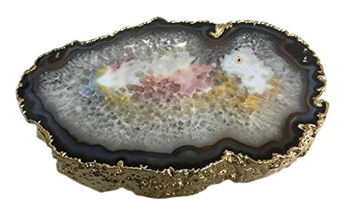 Brasil Home Design Thick Agate Serving Platter 24K Gold Finish, Small