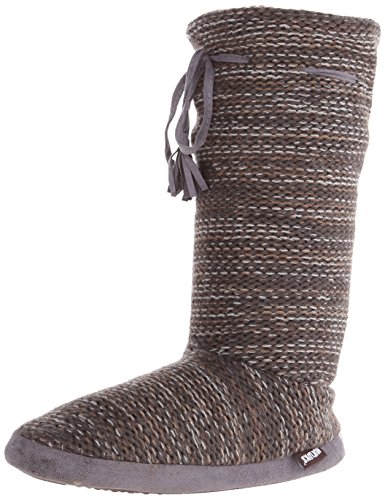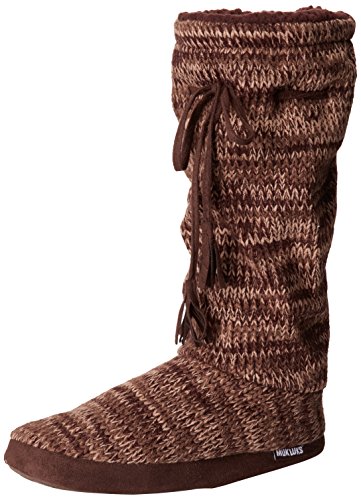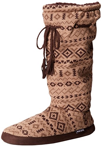 Lounge in style with our Muk Luks tall grommet boot, available in two color marl, french chateau, brown and fairisle two brown. The fleece and furpa lining ensures your feet will stay toasty, and the Acrylic upper and tpr sole will make them long lasting. Available in small, medium and large.