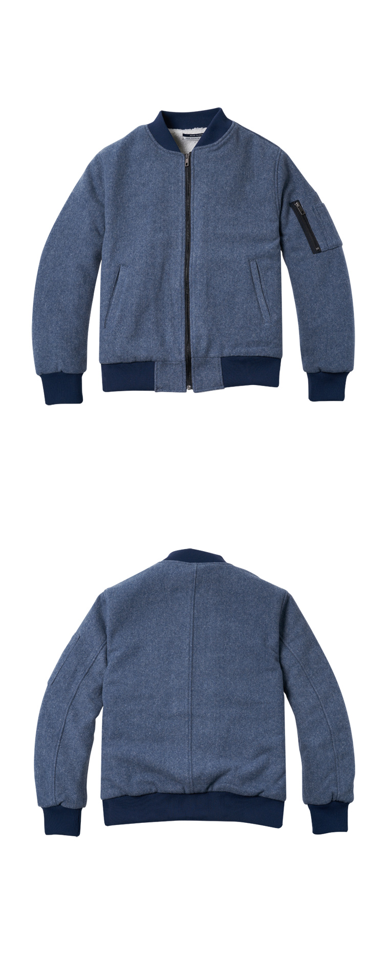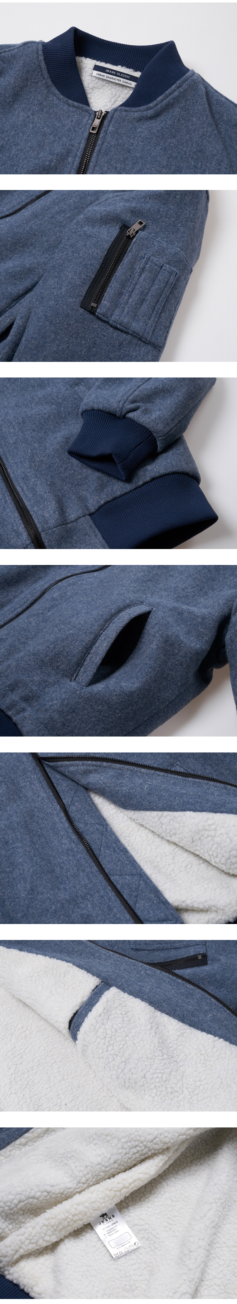 트랜디한 라이트 블루컬러의 울블랜드 원단으로 제작된 MA-1 울점퍼입니다. 고퀄리티 울이중지 원단을 사용해서 가벼우면서도 부드러운 착용감이 매력적입니다. 안감은 가볍고 포근한 느낌이 장점인 페이크퍼를 사용해서 보온성이나 착용감이 매우 좋습니다. 전체적으로 깔끔하면서도 트랜디한 느낌으로 유니크한 컬러감이 매력적입니다. 데님이나 치노팬츠 등과 함께 캐주얼한 코디에 잘 어울리는 점퍼입니다.