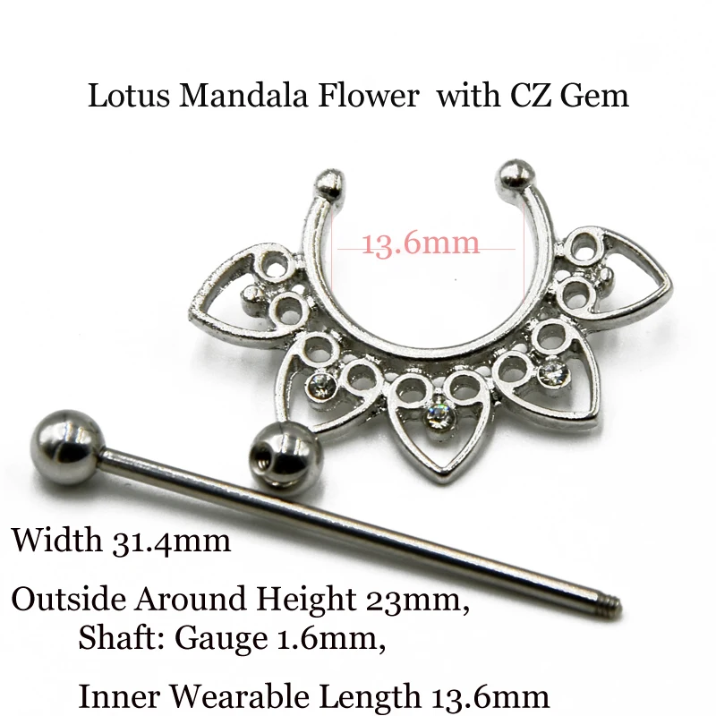 Material:Surgical Steel Shaft,Zinc Alloy,Rhodium Plated