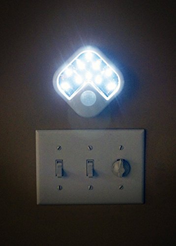 Instantly add motion-activated light for security and safety - indoors or out Infrared technology senses both movement and heat for fewer false activations; daylight-off function Compact (3 in. x 3 in.) and lightweight (4.3 oz.) lets you install almost anywhere; easy-mounting slot 10 super-bright LED cast pure white light, last for 100,000 hours, sip battery power Wire-free installation, operates for months on 3 AA batteries (not included); lead-free RoHS-qualityEffective tool for both security and safety; the sudden activation startles unwanted visitors but also provides safe entrance and room lighting for your family and guests. We were very impressed with the performance of this device in our tests. The sensor is quite sensitive, very quick to light and we experienced no false activations. An excellent way to add automatic light to dark closets and cabinets; makes a great night light for safer navigation without producing constant light - especially helpful during power outages. Effective range 10-15' front, 15-20' side-to-side, 30-second auto-off; white finish matches any decor. Outdoor installation should only be done where unit will be protected from direct exposure to elements. Also has constant-on setting when needed. 3 in. x 3 in. x 1-3/8 in.; 4.3 oz. with 3 AA batteries installed (batteries not included).Feature
