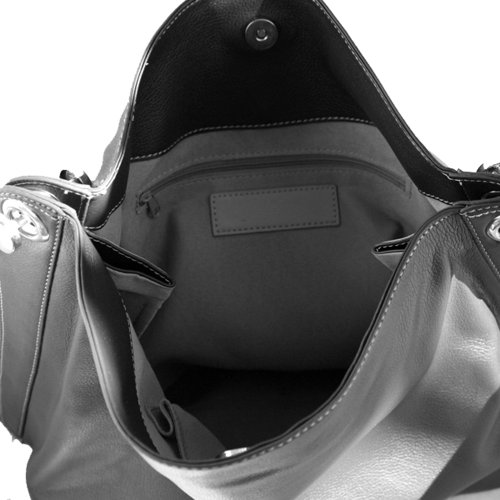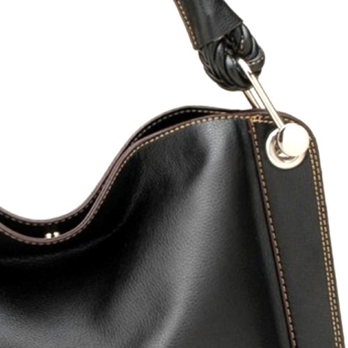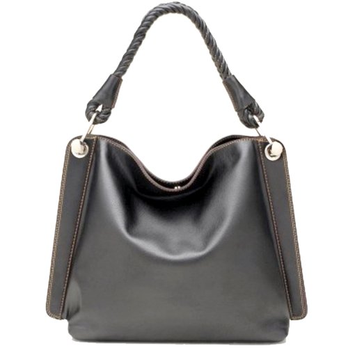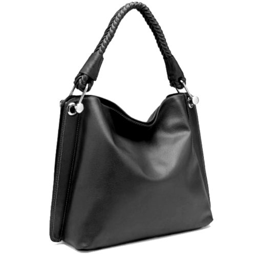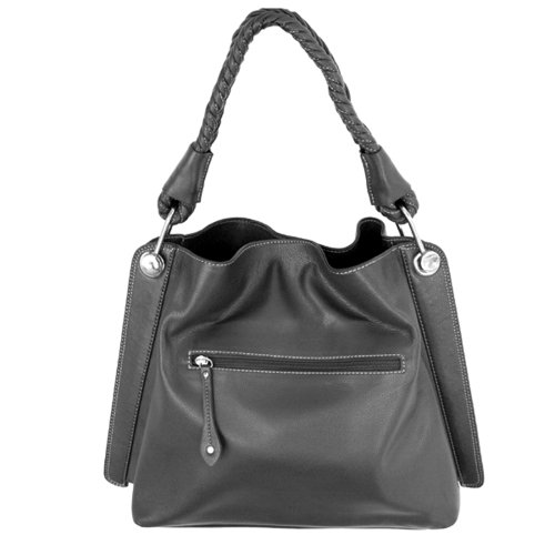 Large Braided Handle Flap Sides Silver Rivet Hobo Silver Fever® Handbag (Black)
