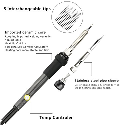 - 1. Heat Up Quickly Soldering Iron: Inner-heated ceramic technology makes the electric soldering iron heat up quickly; Upgraded heat resistant material (not plastic).