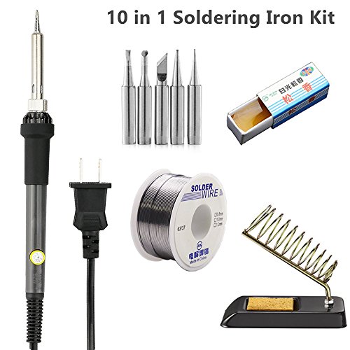 Soldering Iron, 60W 110V Electric Soldering Iron Kit, Adjustable Temperature Welding Tool, 5pcs Different Tips, Soldering Iron Stand, Solder Wire,Rosin for Variously Repaired Usage by CooZero
