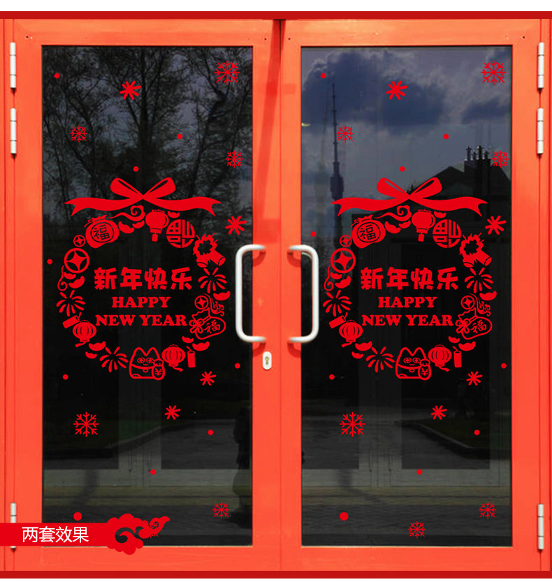 春节新年墙贴画喜庆橱窗贴 商场店铺装饰品玻璃门窗贴纸年画