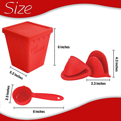NO BURNT CORN AND TOXIN FREE : Because of the size that is designed for the microwave it pops up all the corn, this size dose not burn the corn. And because of sample lid's designed it does not get stuck down and this prevents burnt corn as well. And Food Grade Silicone BPA and PVC free. Microwave popcorn popper is made of silicon so its durable