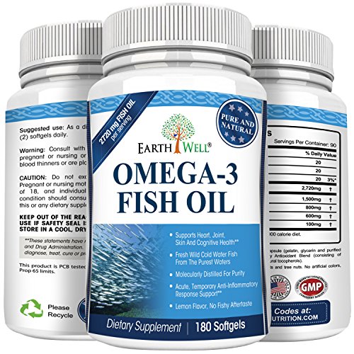 -. Feature : HIGHEST QUALITY - You just found the highest quality omega 3 fish oil softgels on Amazon. Because we only use freshly caught wild cold water fish, and these fish live in the purest Pacific Ocean waters, far from modern pollution. And because we use a world-renowned Norwegian technology to process and extract fish oil, considered by most experts to be the finest production method in the world. / HIGHEST POTENCY - In each capsule you get 1,360 mg of pharmaceutical-grade fish oil, much more than other brands. With highly concentrated Omega-3s (800 EPA, 600 DHA, and 100 other EFAs), our fish oil has the most potent EPA/DHA ratio as recommended by most physicians including the TV Doctor, giving you the ultimate health benefits your body needs. / NO FISHY AFTER TASTE - There is absolutely no fishy aftertaste. We use fresh lemon to prevent any fishy smell, odor, taste or aftertaste. There is no smell and the softgels do not taste fishy or bitter at all, and all our customers (adults, toddlers or bodybuilders) love them for that. / BEST NATURAL SOLUTION - EarthWell omega-3 fish oil has the highest purity level thanks to a production process called molecular distillation. This nordic process ensures that all heavy metals (mercury) naturally coming from the sea are removed. Through this research verified procedure you get the safest and purest product on the market, only containing the best high grade omega 3 your body and cell growth need. And it is without soy or artificial ingredients. / 100% MONEY BACK GUARANTEE - You get our unconditional money back guarantee, because we are so sure that you will be pleased with our top quality fish oil omega 3 supplement. But if you are not 100% satisfied for any reason, we will replace your bottle or give you a refund, no questions asked.