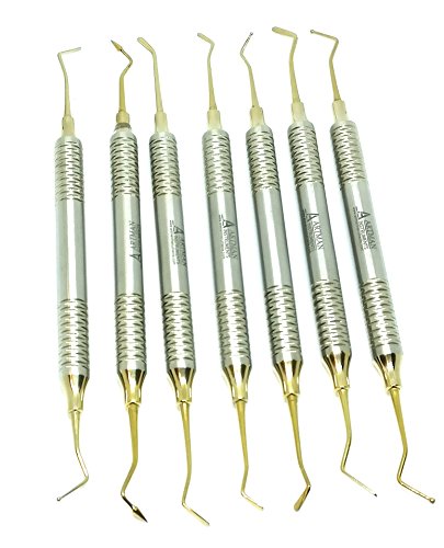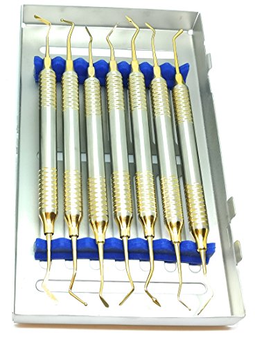 Dental Composite Glass Ionomer Amalgam filling Instruments Kit in cassette (7 golden plasma coated pcs) by Wise Linkers