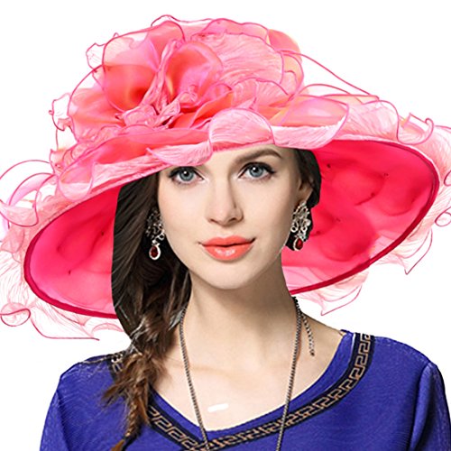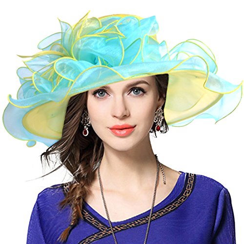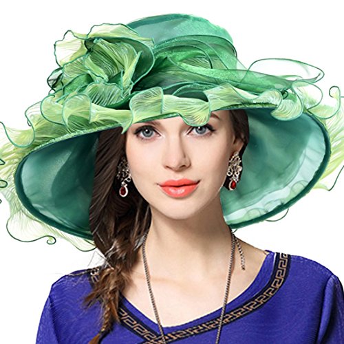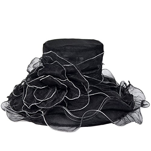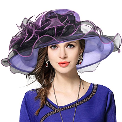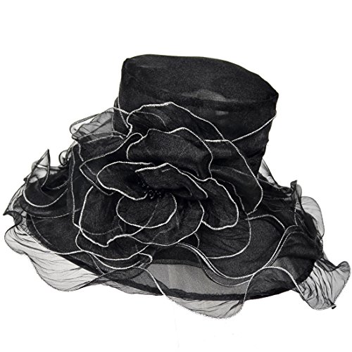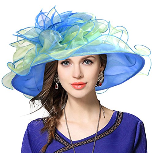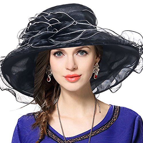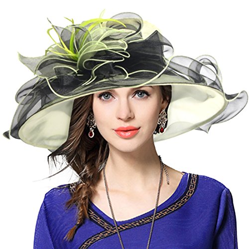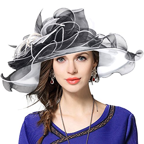 | Kentucky Derby Hat Wide Brim Flounce Cocktail Tea Party Bridal Dress Church Hat |
