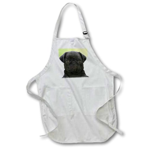 3dRose apr_21198_2 Pug Puppy-Medium Length Apron with Pouch Pockets, 22 by 24-Inch