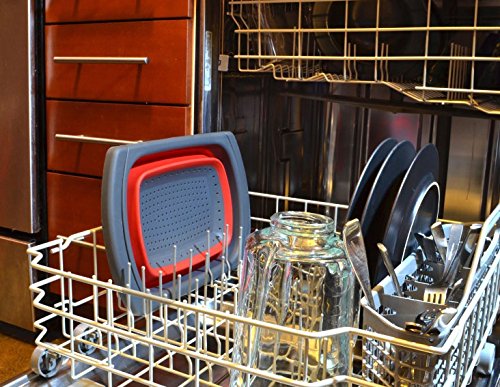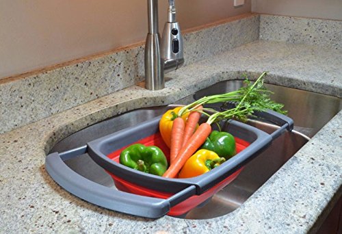 - QUICK & EFFICIENT: The only BPA Free Veggie and Pasta strainer that collapses to a flat 1 inch. This is a kitchen must have! Perfect for rinsing fruit, vegetables, draining pasta and canned goods.