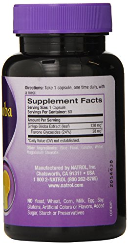 ReleaseDate : 2015-06-22 Studio : Natrol Publisher : Natrol Binding : Health and Beauty Product Description Natrol Ginkgo Biloba, taken from one of the world's oldest known trees, the Ginkgo Biloba tree, helps improve circulation to improve clear thinking. In today’s high-tech world, we are overloaded with information. That’s why it’s more important than ever to stay clear-headed and on the ball. With Natrol Gingko Biloba, you can get the help you need. Natrol Ginkgo Biloba Extract is standardized to guarantee a potent level of highly active compounds. Our Ginkgo Biloba can help with improved circulation to support cognitive function. Natrol makes this product in the U.S.A. 0