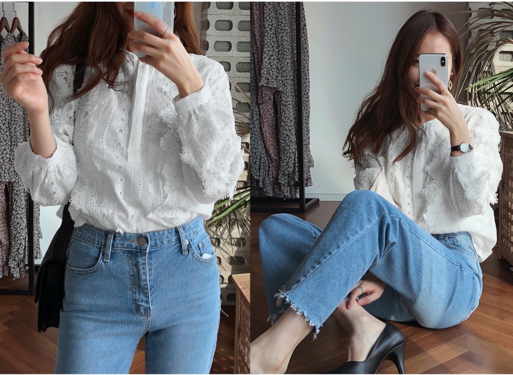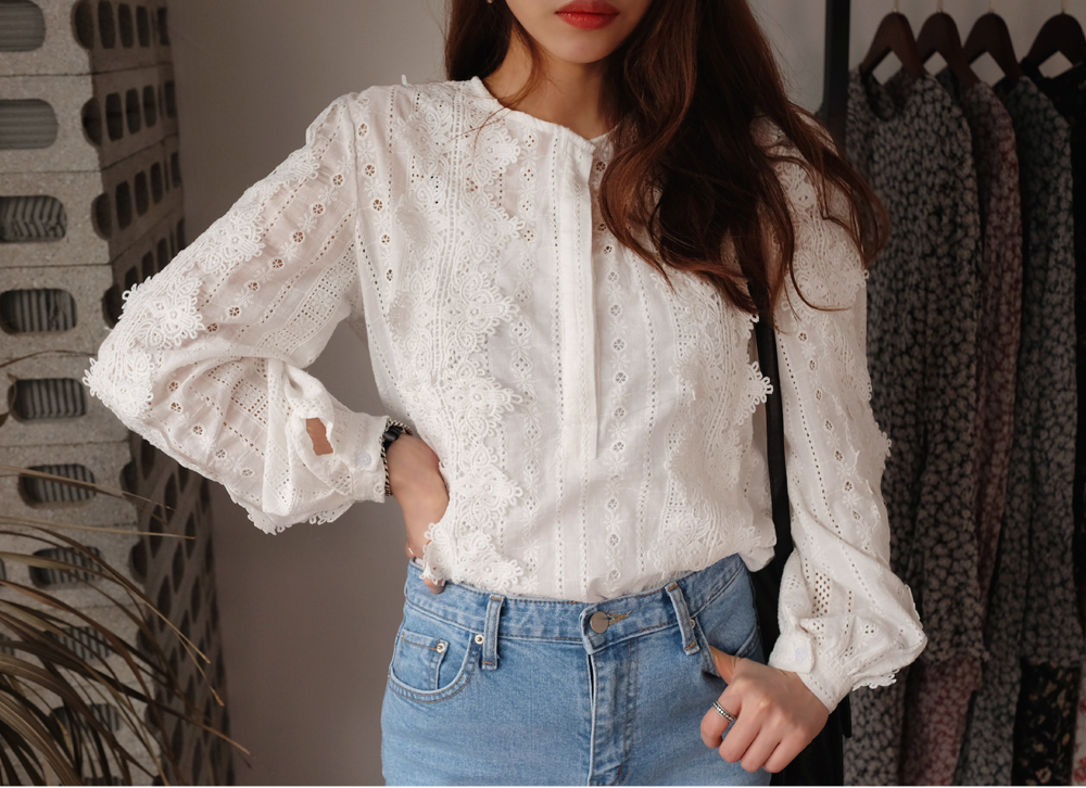 레이스 펀칭 블라우스