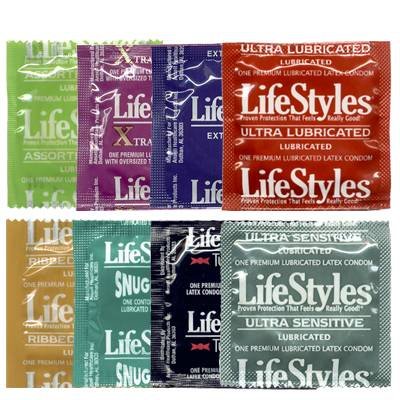 Studio : Ansell Publisher : Ansell Binding : Health and Beauty Product Description Popular and economical, this Lifestyles Condom sampler features three condoms each of the following eight styles: Lifestyles Ultra Sensitive Condoms, Lifestyles Ribbed Pleasure Condoms, Lifestyles Assorted Colors Condoms, Lifestyles Ultra Thin Condoms, Lifestyles Tuxedo Condoms, Lifestyles Extra Strength Condoms, Lifestyles Assorted Flavors Colors Condoms (three flavors), Lifestyles Ultra Lubricated Condoms. Condom Country pack of 24 condoms. 0