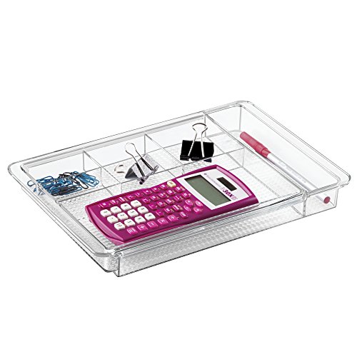 mDesign Expandable Office Supplies Desk Drawer Organizer for Pens, Highlighters, Paper Clips, Sticky Notes - Clear