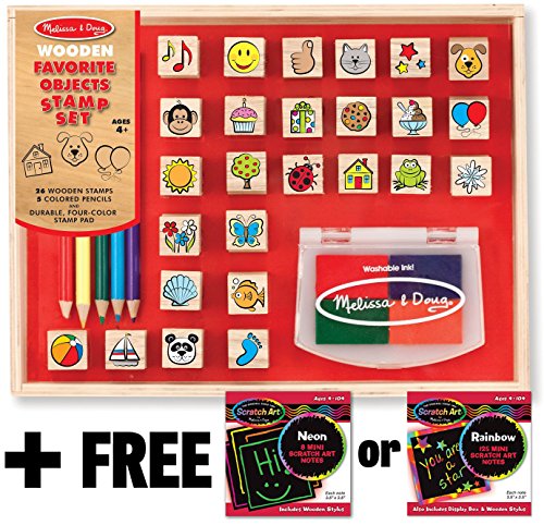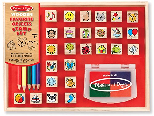This set of 26 wooden stamps features all sorts of favorite things, from pets and wild animals to sweets and party treats! Also included are five colored pencils, a four-color stamp pad with washable colors and a sturdy wooden box for storage. Great for making cards, scenes and exciting storylines!