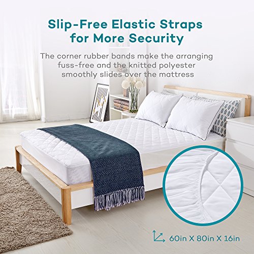 Easy Breezy Positioning The 60 x 80 x 16 inches-sized mattress pad can be fixed onto your bed in no time thanks to the convenient corner rubber bands. In addition, the super smooth knitted polyester helps the pad to easily glide over your mattress, contributing to the easiness of the setup. Drape the pad over any queen-sized bed and enjoy a healthier sleep.