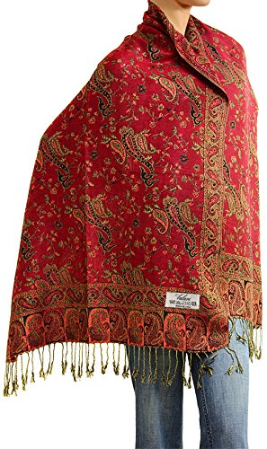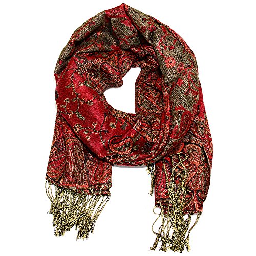 (Falari)/Accessories/Scarves/DIRECT FROM USA/Falari Women's Woven Pashmina Shawl Wrap Scarf 80" X 27" Red A05-01