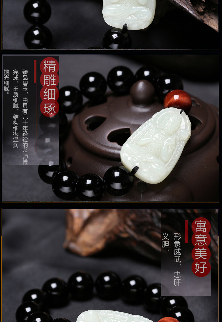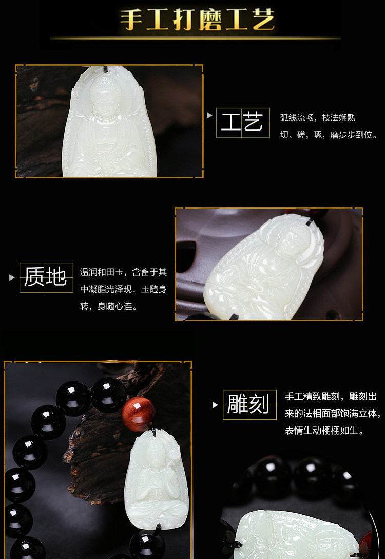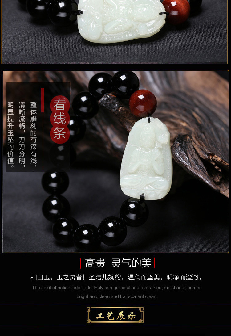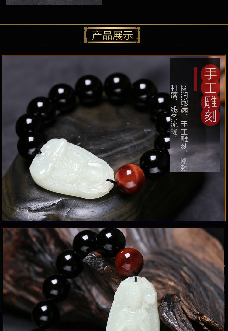 开光和田玉本命佛肖马曼唯传奇手链玉石黑曜石大势至菩萨男士手串