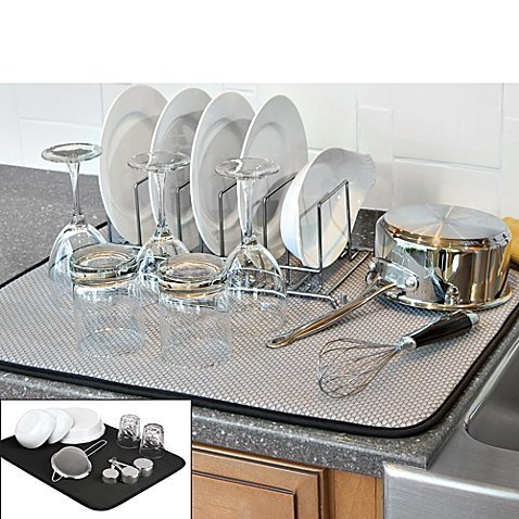 -. Binding : Wireless Phone Accessory -. Brand : The Original™ -. Color : Black -. EAN : 0747269505807 -. Feature : The Original XL Mesh Dish Drying Mat features a reversible side that uses mesh for better airflow and faster drying Cushions delicate dishes and stemware Folds or hangs for easy storage Try it underneath a dish drying rack in place of a plastic drain board Can be placed underneath your appliances to protect your counter top from scratches and scuffs Measures 18" L x 24" W Machine washable Imported -. PackageQuantity : 1 -. ProductGroup : Kitchen -. ProductTypeName : WIRELESS_ACCESSORY -. Title : The Original™ XL Dual Dish Drying Mat in Black -. UPC : 747269505807