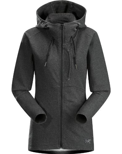 FEATURES of the Arcteryx Women's Tarsa Hoody Performance French terry with melange effect, soft cotton hand and wicking properties Slimming silhouette, spacious hood with branded drawcord Two slash hand pockets, zipped pocket Embroidered BIRD logoFeature