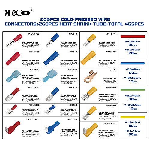 An assorted box which contains the most popular wire terminal connectors and heat shrink Tube. Ideal for garages,auto electricians,mechanics,workshops etc...Suitable for cars,vans,motor homes etc.