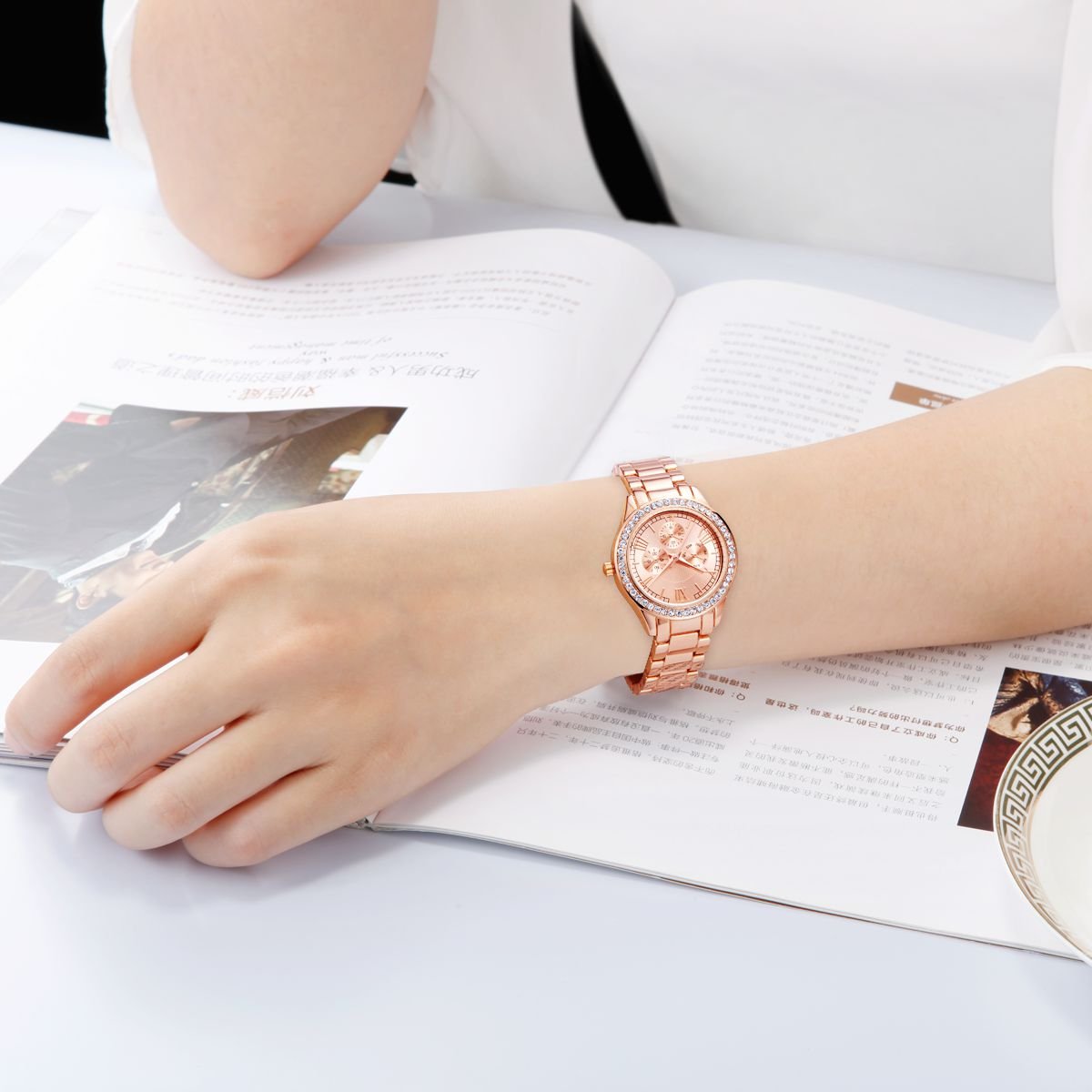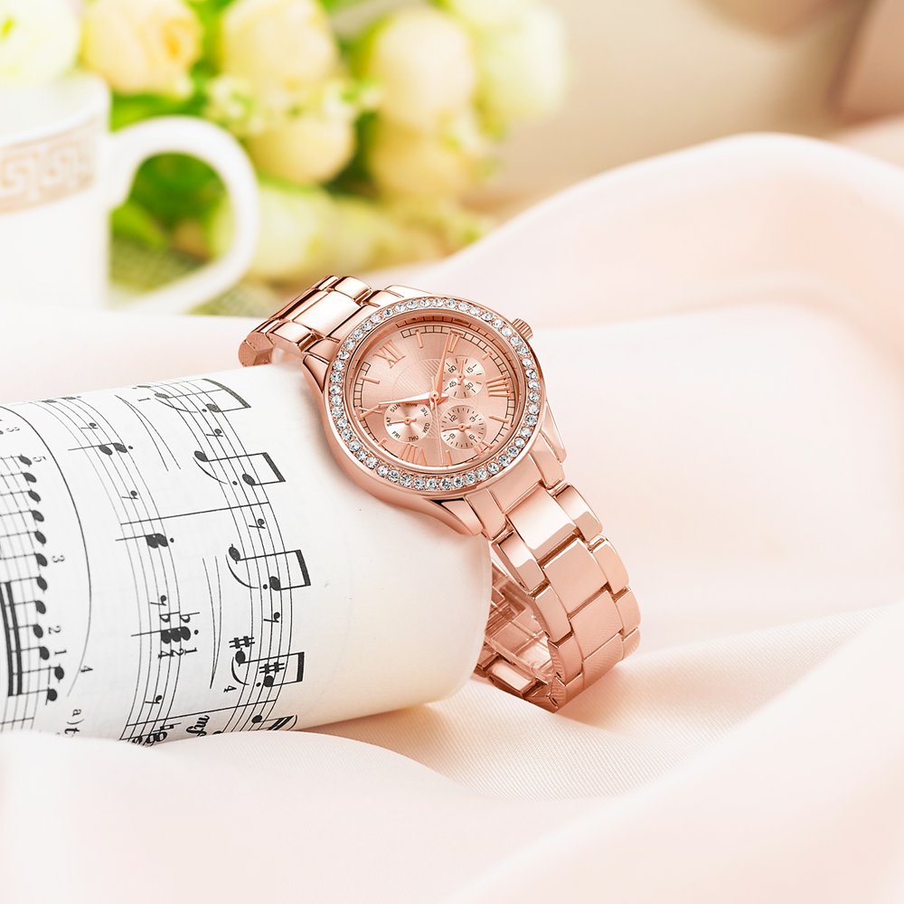 Crystal luxuriously shines in the case part, an elegant impression watch.
