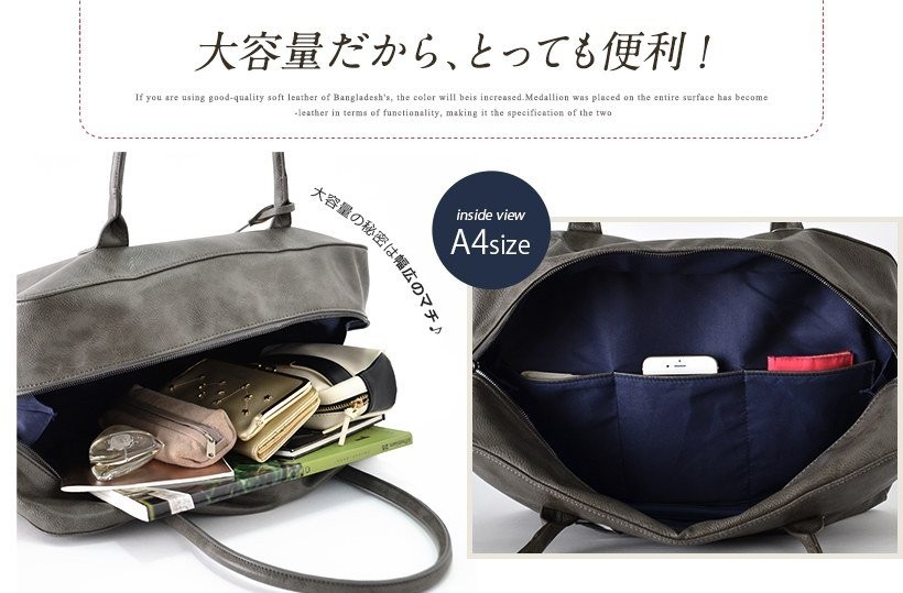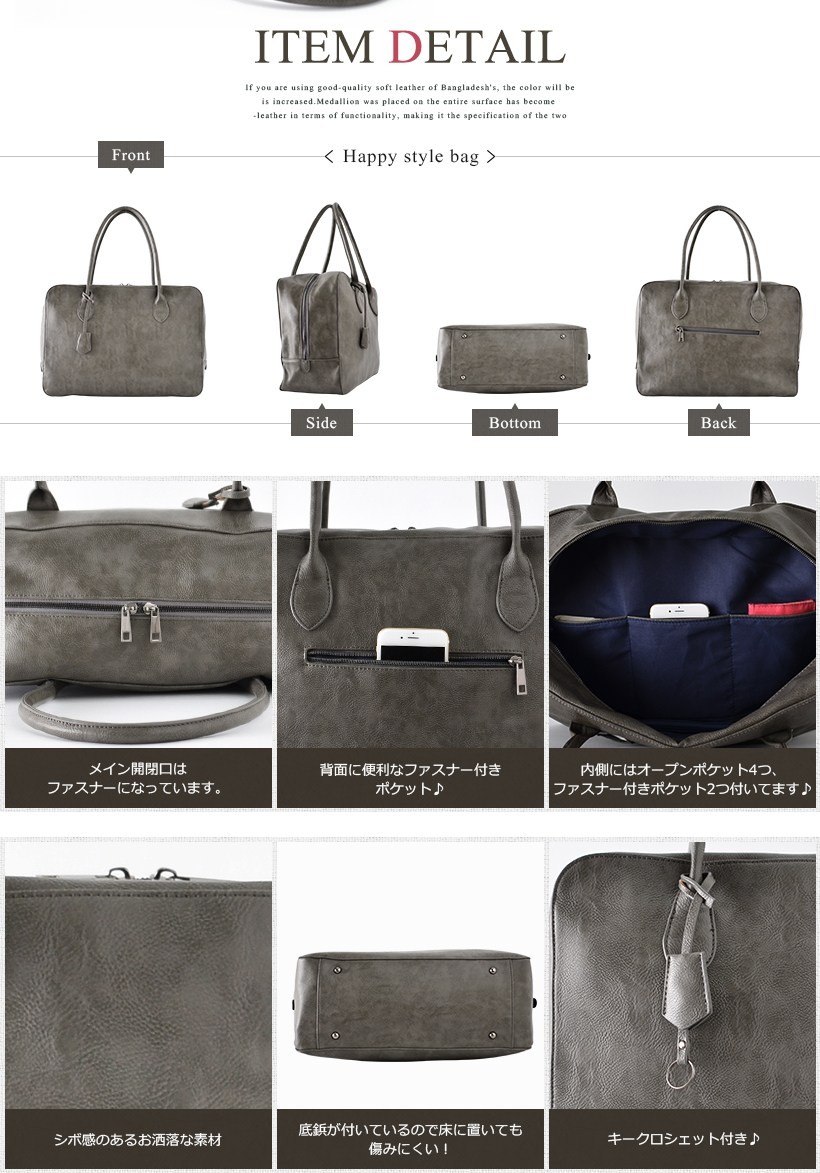 ●SIZE:高さ:約30cm / 幅:約42cm / マチ:約15.5cm●ハンドル長さ:約64cm×幅:約1.5cm、持ち手高さ:約28cm●外ポケット:背面ジッパー付きポケット1●内ポケット:オープンポケット4、ジッパー付きポケット2●重さ:約760g●素材:合成皮革●バッグのメイン開閉口はファスナーになっております。※キークロシェット付き[カラー]ブラック・グレー・グレーベージュメーカーより取り寄せ商品のため、在庫状況によっては欠品・廃盤の可能性があります。あらかじめご了承ください。
