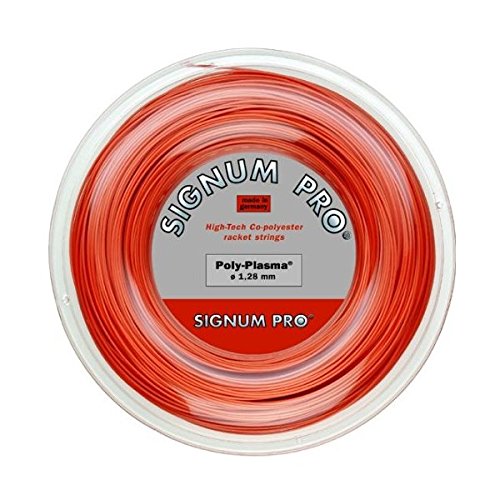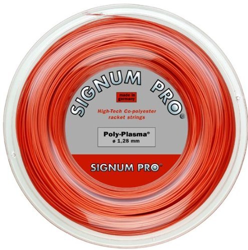 Studio : SignumPro Publisher : SignumPro Binding : Misc. Product Description Poly Plasma has almost no tension loss, excellent ball control, and is spin friendly. This is a great choice for the player seeking power, without sacrificing any durability. This string has excellent playing comfort and playability. Poly Plasma unlike other polyester strings is soft and maintains tension very well. We highly recommend this gauge if you are seeking a lot of durability and if you are a hard hitter. Color: pearl-orange New molecular structure Minimum tension loss (no string moving) Excellent ball control High durability High dynamic power Excellent playability and comfort Distinctive color 660ft/200M 16L 1.28MM 0