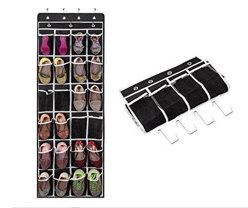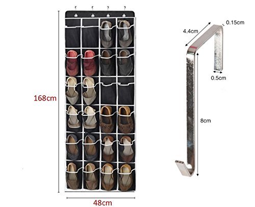 -. Feature : TRAVEL LIFE, HIGH QUALITY MAKE BETTER--Constructed from Premium Non-woven Fabric for sturdy durable use, excellent mould-proof &anti-bacterial and well-ventilated. / SHOES LIFE, USEFUL MAKE BETTER--24 mesh pockets on the over the door organizer store up to 12 pairs of shoes. The mesh pockets promote airflow through the pockets keeping shoes fresh. / SHOES LIFE, SIMPLE MAKE BETTER-- Easy to use:just hang over the doors with 4 metal hooks through 4 holes. / SHOES LIFE, MORE CHOICE MAKE BETTER-- Great for creating additional storage space and storing various small items like shoes, folded umbrella, Chargers, Pens, Sticky notes, toys,gadget tools, shampoo, sockets, lingerie sock clothes etc. / SHOES LIFE, DIMENSIONS MAKE BETTER--Dimensions for the closet organizer for shoes are 62in x 19in, Pockets are 7.5" Tall 4.5" Wide and can be stretched to 3" deep.