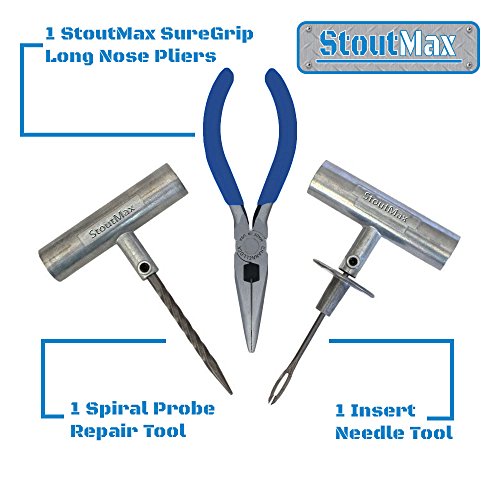 WE HAVE INCLUDED EVERYTHING YOU NEED!: A dependable tire gauge and pliers will be needed for every repair. A StoutMax 120 PSI chrome tire gauge and steel sure-grip pliers are included in this kit, along with 64 other well thought-out flat tire repair tools and pieces plus a durable mobile storage case to keep it conveniently all together