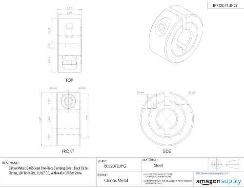 Climax Metal 1C-025 Steel One-Piece Clamping Collar, Black Oxide Plating, 1/4" Bore Size, 11/16" OD, With 4-40 x 3/8 Set Screw