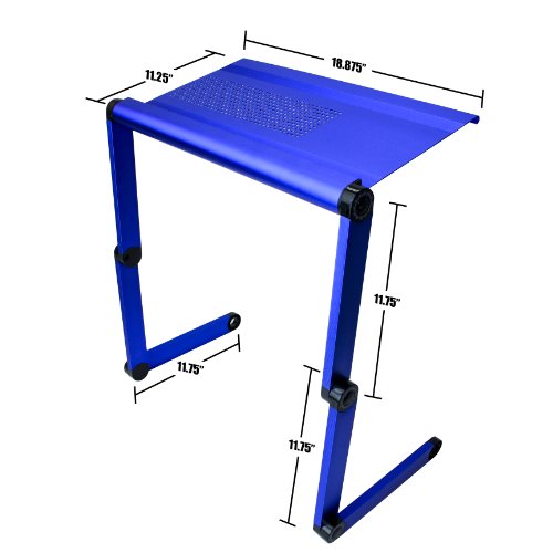-. Binding : Office Product -. Brand : Sojitek -. Color : 04-Large-Blue -. EAN : 0689466780161 -. Feature : Heavyduty aluminum alloy can support up to 40 pounds; height is adjustable from 11.25 inches to a full height of 22 inches / Available to attach Mousepad (not included) / Suitable for laptops with a 19" screen and smaller / Product Dimensions: 23 x 12 x 1.5 inches ; 6 pounds / Extremely easy to adjust to that perfect height and angle with our sP.R.Ing button lo / Unbox it and you are ready to go! No assembly required -. Label : SOJITEK -. Manufacturer : SOJITEK -. Model : LEPUSEMTE46449 -. MPN : BLULAR02-1 -. PackageQuantity : 1 -. PartNumber : BLULAR02-1 -. ProductGroup : Office Product -. ProductTypeName : OFFICE_PRODUCTS -. Publisher : SOJITEK -. Studio : SOJITEK -. Title : SOJITEK Heavyduty Blue Wide 19" x 11.25" Adjustable Folding Ventilated Laptop Notebook Tablets PC iPad Table / Portable Bed Tray Book Stand -. UPC : 689466780161