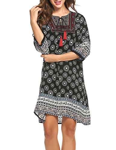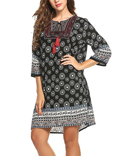 Women's Bohemian Vintage Printed Loose Casual Boho Tunic Dress
