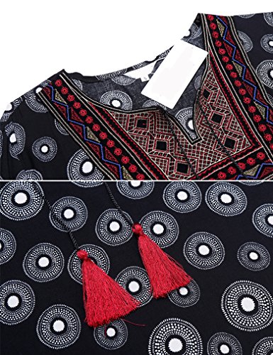 ★★Bohemian dress featured vintage tribal printed ,fashionable ethnic style, tassel lace-up, embroidery décor