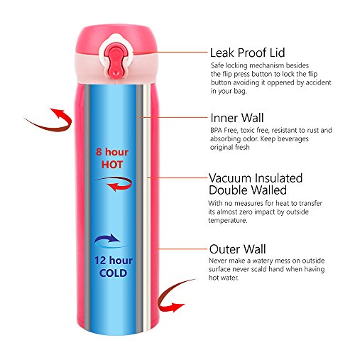 It provides safety usage with Free BPA plastic cover and 18/8 stainless steel body.Impact-resistant. It presents easy usage in journey or daily activities through solid lock system and seal cap.