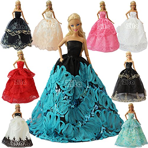 - Package includes: 6 Random dresses for barbie doll +6 Hangers