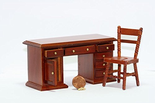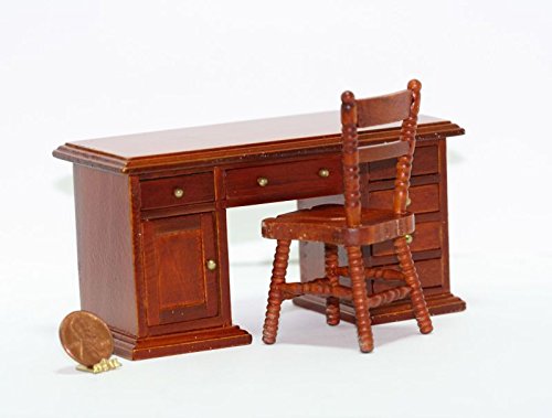 -. Title : Dollhouse Miniature 1:12 Scale Cherry Wood Desk & Chair Set