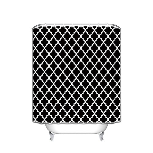 BMALL Shower Curtain Black Quatrefoil Trellis Lattice Pattern Shower Rings Included 66 x 72 Inch