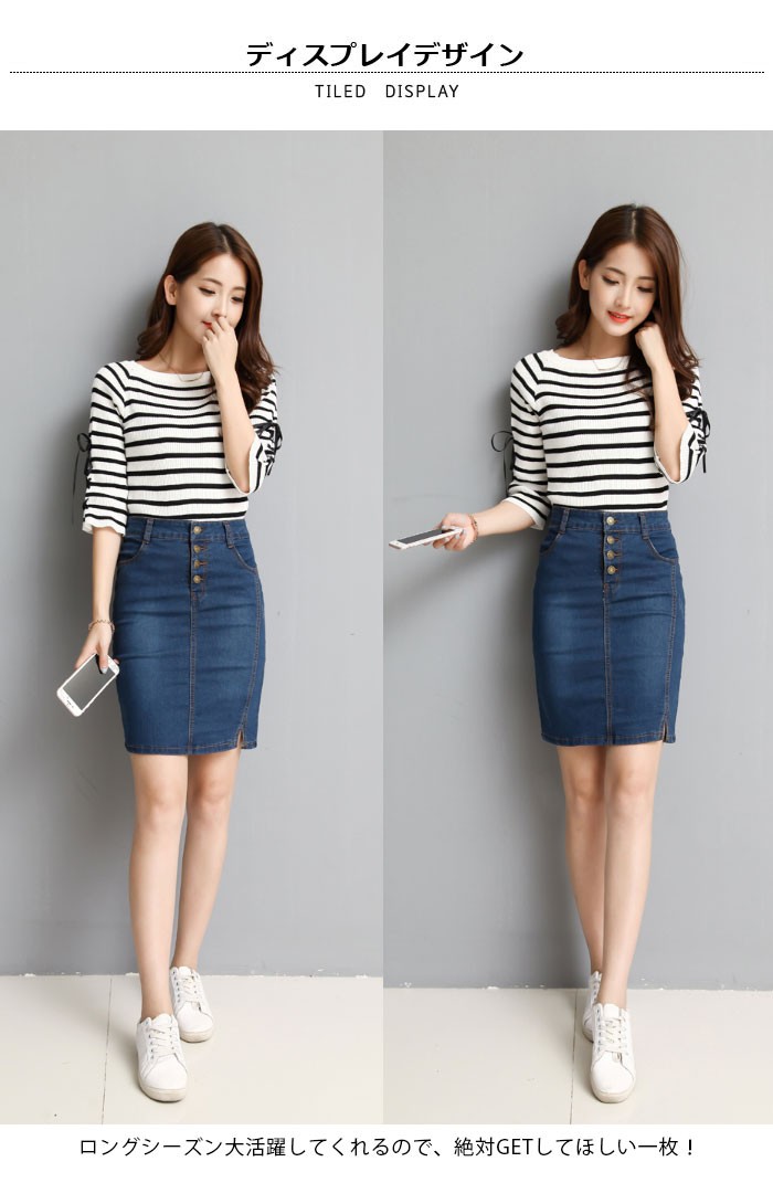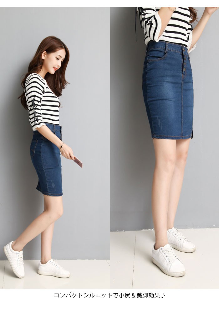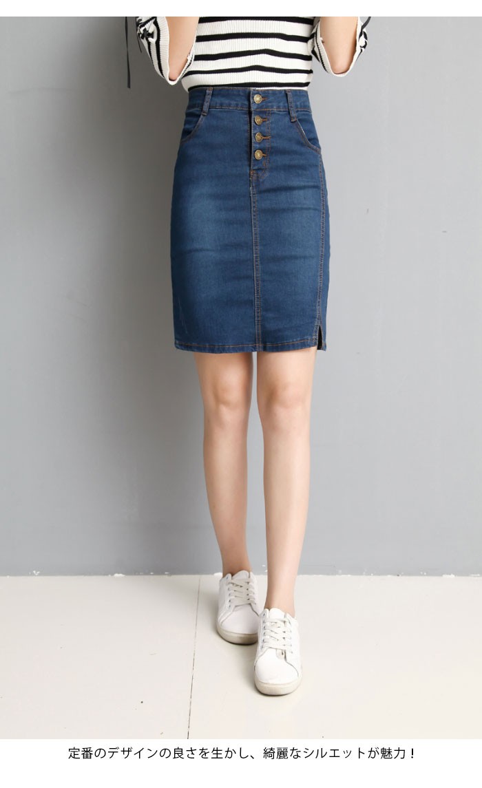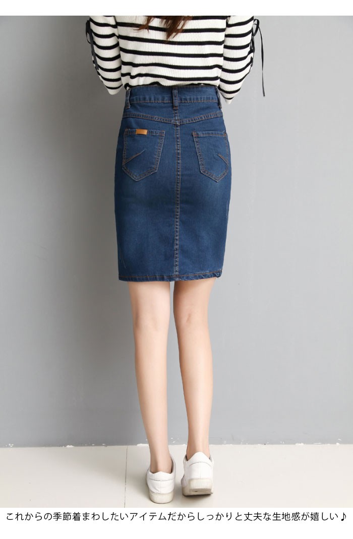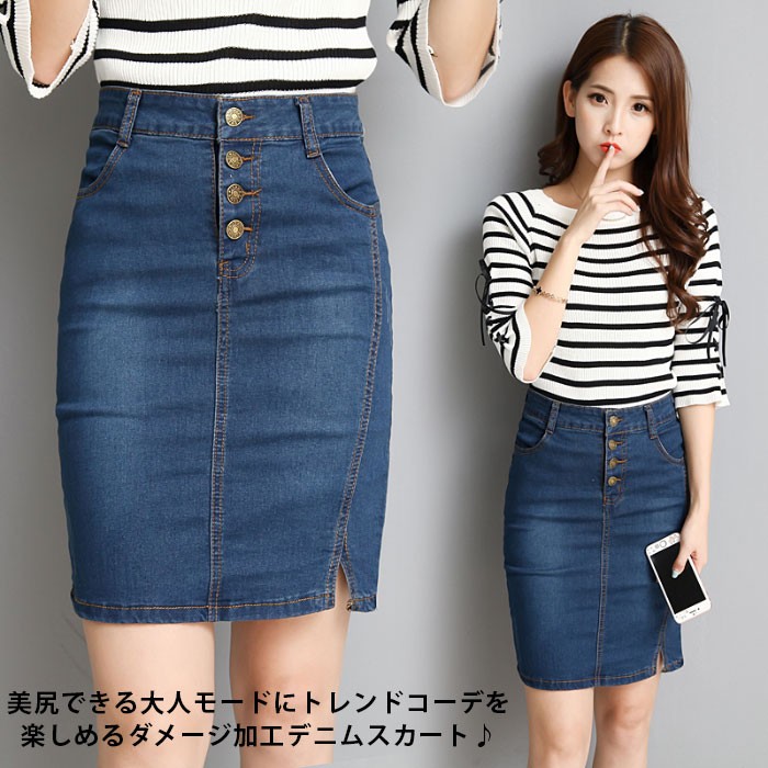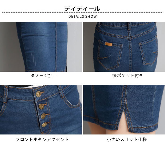 | 商品名 | デニムスカート ミディアムスカート つなぎスカート レディース 無地 タイトスカート スリットスカート 膝丈 ダメージ加工 大きいサイズ 秋新作 |
