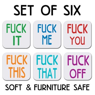 -. Brand : Funny Gift Beer Coasters -. Color : White Base, Quality Black Sublimation Ink -. EAN : 0724235021493 -. Feature : Fuck Off Fuck it Fuck You Joke Humor Gift Coasters / Set of six (6) individual - 3.5 inch - Square - Drink Fuck Coasters / Soft - Non-slip recycled rubber back protects furniture / Beverage Drink Coasters - Non-Sweating - Absorbent & Thick / 100% USA Made in our Coaster Print Studio -. Label : Hop Run Warehouse -. Manufacturer : Hop Run Warehouse -. Model : C-MT -. MPN : 14199885 -. PackageQuantity : 6 -. PartNumber : 14199885 -. ProductGroup : Kitchen -. ProductTypeName : KITCHEN -. Publisher : Hop Run Warehouse -. Size : 3.5" x 3.5" x 1/4" -. Studio : Hop Run Warehouse -. Title : Fuck Off Fuck it Fuck You - Set of Six - Joke Humor Gift Coasters for Drinks - Absorbent | Furniture Safe - Set of six (6 pcs) - Gifts Home Office - Quality Neoprene 1/4 Inch Thickness 3.5"x 3.5" -. UPC : 724235021493