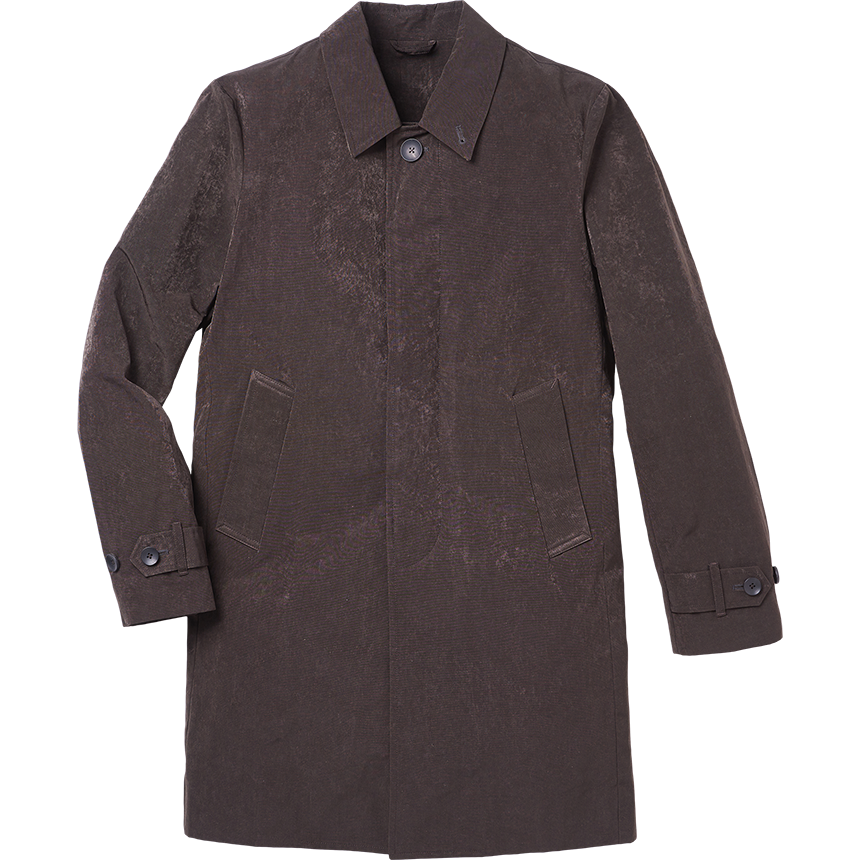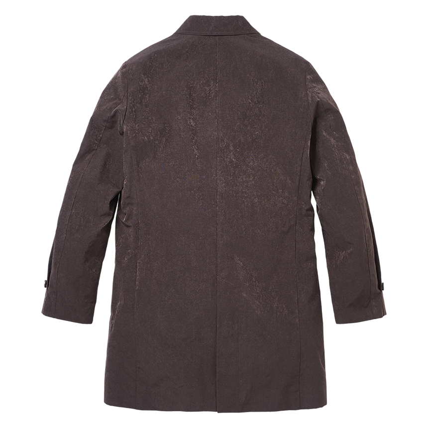 - 면과 비슷한 터치감의 폴리에스터 원단을 적용한 롱 캐주얼 싱글코트- 뒷 단 스냅단추로 오픈 되는 트임, 앞판 2개의 핸드포켓- 발수가공 처리된 원단으로 생활방수 가능