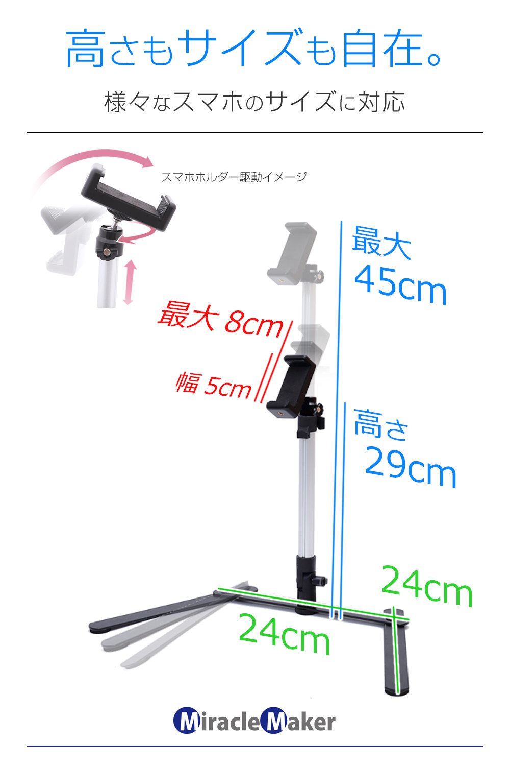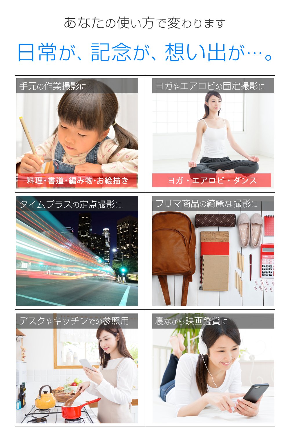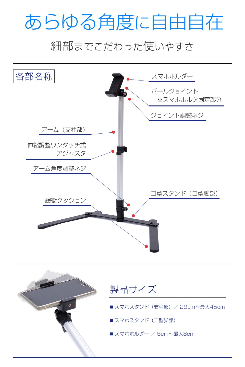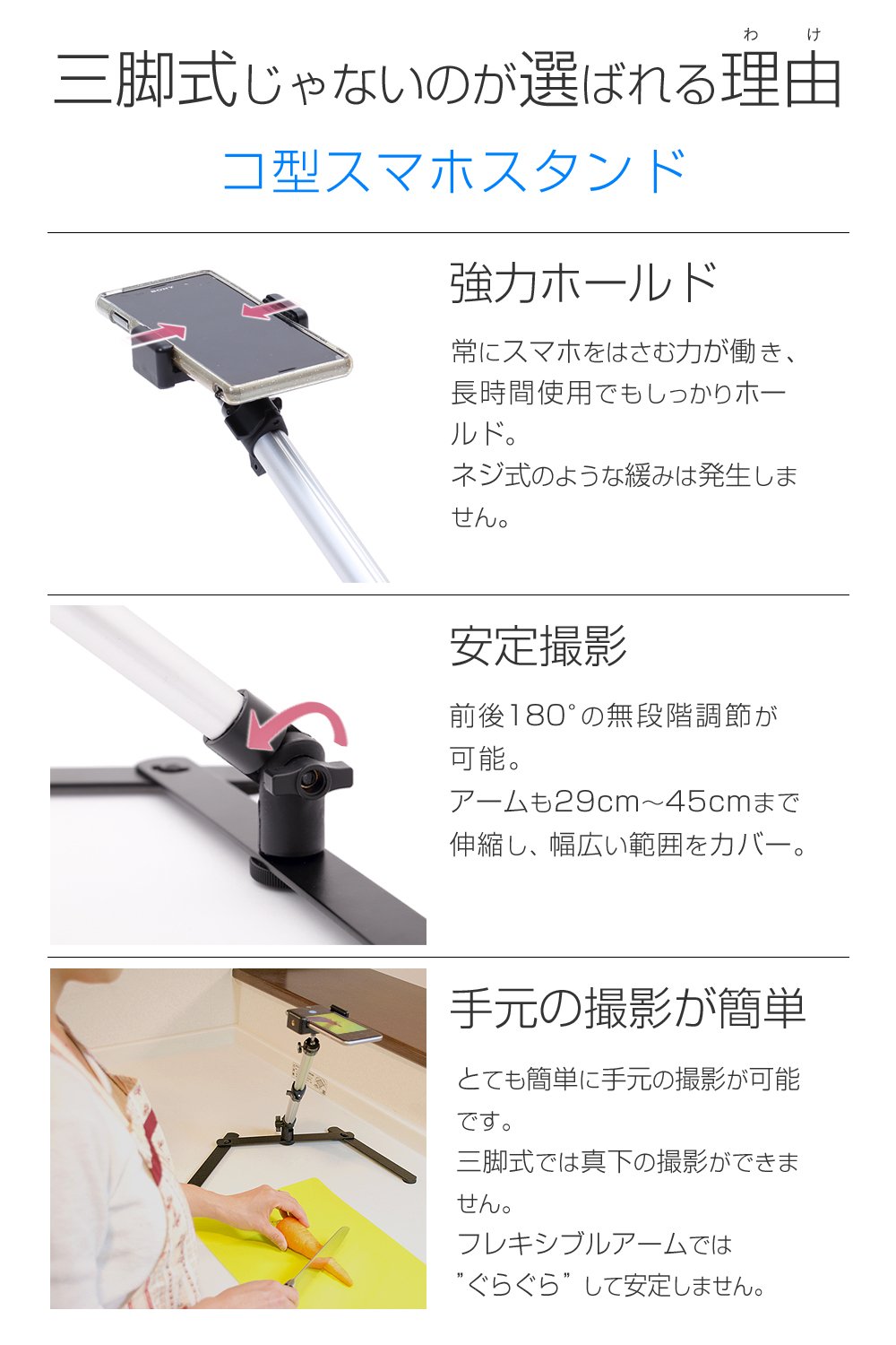 A smartphone stand that can also be taken from directly above.